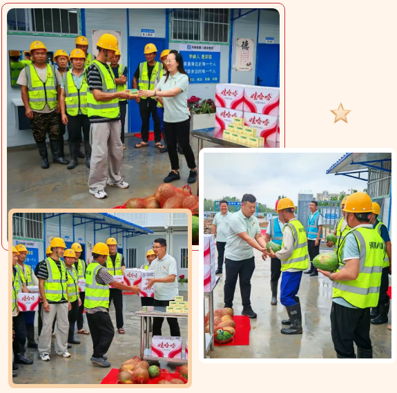關(guān)愛一線工友,踐行初心使命。隨后,黨支部成員前往優(yōu)輝制藥項(xiàng)目部,為奮戰(zhàn)在高溫一線的工友們送去礦泉水、西瓜、藿香正氣水等防暑物資,并詳細(xì)詢問了他們的工作和生活情況,認(rèn)真傾聽工友們在高溫作業(yè)中遇到的困難與需求。并特別叮囑各班組負(fù)責(zé)人,要科學(xué)調(diào)整作業(yè)時(shí)間,嚴(yán)格落實(shí)防暑降溫措施,確保施工安全與工人健康。工友們紛紛表示,黨組織的關(guān)懷讓他們倍感溫暖,將以更加飽滿的熱情投入項(xiàng)目建設(shè)。